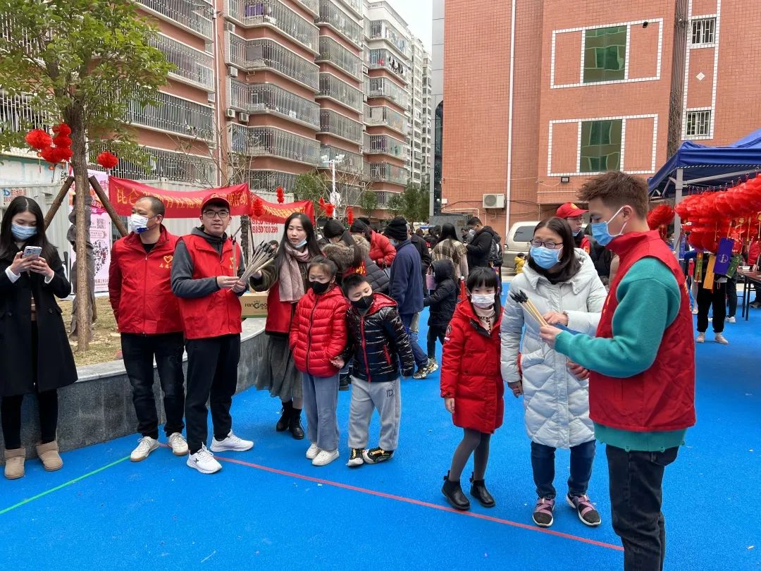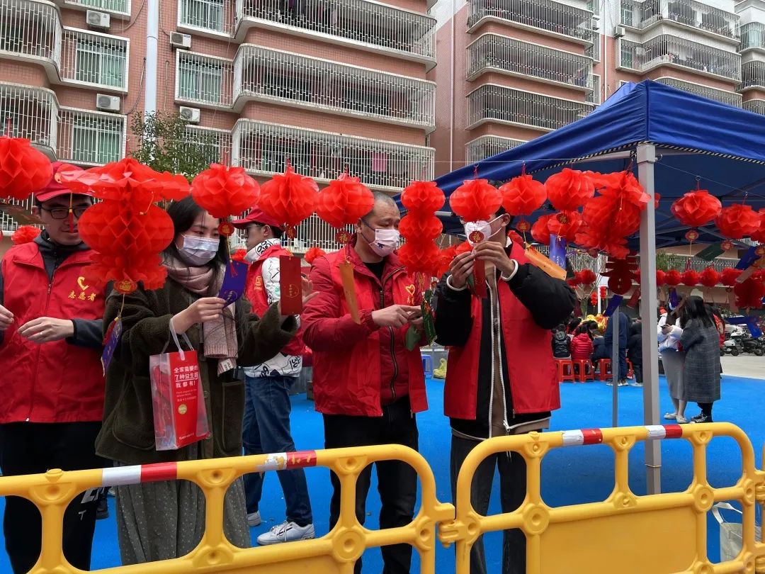 现场设置了猜灯谜、做花灯、投壶等有奖游戏,还有脊椎正骨、垃圾分类、安全宣传等活动,集团党员志愿者们与社区小朋友们一起做游戏,为社区居民普及垃圾分类、安全教育等知识,现场其乐融融,洋溢着热闹欢快的氛围!