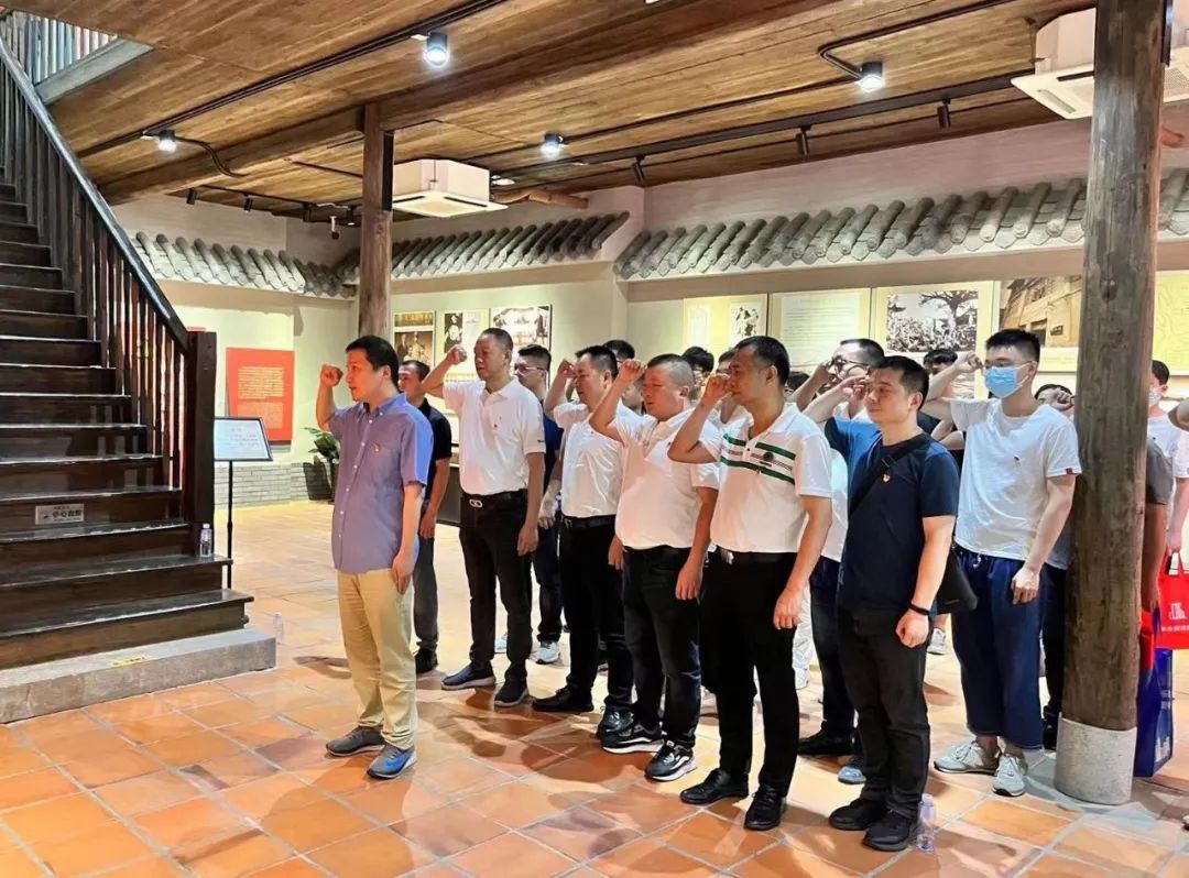 参观结束后,国资系统党委书记高捷同志带领党员重温入党誓词,在鲜红的党旗面前,高举右拳,一句句铿锵有力的入党誓词响彻在潮江楼内,全体干部职工用饱满的热情、昂扬的斗志表达出作为共产党员的自豪感和使命感,抒发对党忠诚的意志和信念。