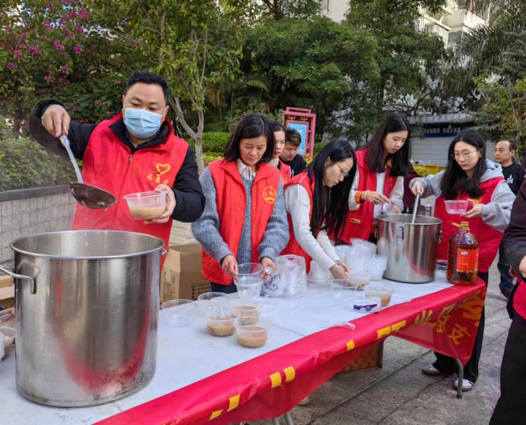 为强化党建引领,弘扬中国传统文化,营造温馨、和谐的社区氛围,福州新区纪检监察工作委员会党支部、福州新区党政办公室党支部、福州新区生态环境与城市建设管理局党支部、nba博彩 党总支共同携手在东关保障房二区开展“情暖冬日 爱心腊八”主题党日活动,为小区居民在寒冷的冬日里送上一份浓浓的温暖。