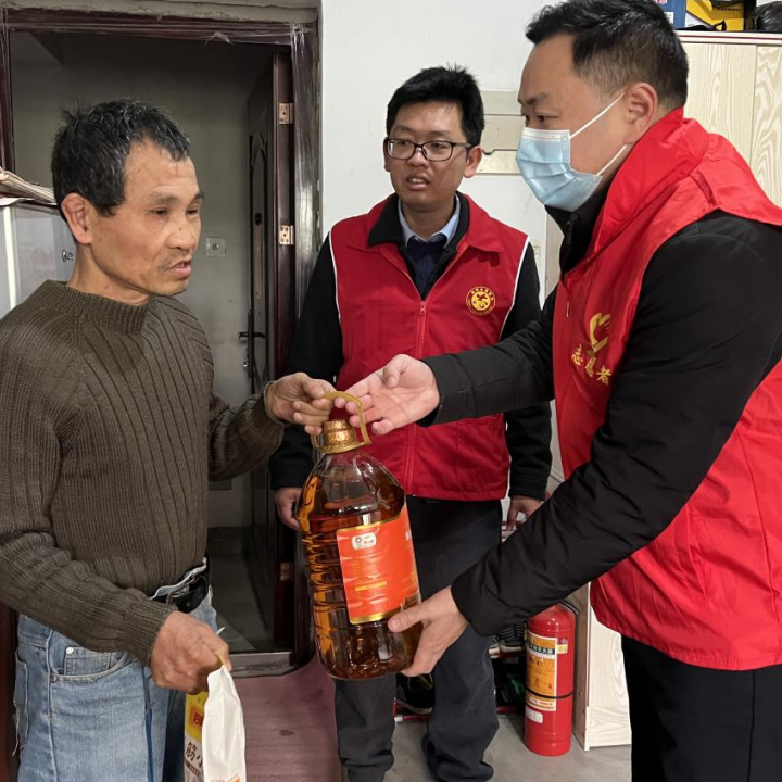借着节日氛围,党员志愿者们还主动将温情送上门。党员志愿者们在活动中为小区15户贫困家庭送去大米、面粉、食用油等生活用品,并深入了解他们的生活、倾听他们的心声,传递党的温暖和关爱。受助家庭纷纷表示“生活在小区这个大家庭,每年得到党的的温暖,确实感受到满满的幸福感。”