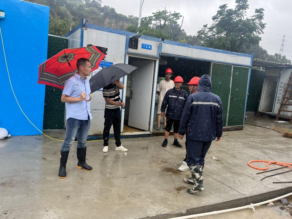集团权属城投控股公司对各项目开展隐患排查,充分加强建设工地安全管控,全面排查现场低洼带水淹、高处物体掉落、脚手架倾倒等风险,不引发次生、衍生灾害,强调在建现场停止施工、做好安全防护措施和应急抢修后勤保障,确保人身安全。